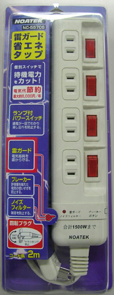 NOATEK 雷ガード付コンセントタップ NC-5570S 4ヶ口4スイッチ省エネタップ /30点入り(代引き不可)【ポイント10倍】