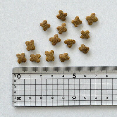 <食べやすい小粒サイズ> 粒のサイズは、直径10mm・厚さ4mmと、口が小さな小型犬でも食べやすい小粒です。