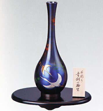 花器・花瓶■ 一輪生 彫金 双鶴 ■銅製 小判台・木札付 化粧箱入り【高岡銅器】